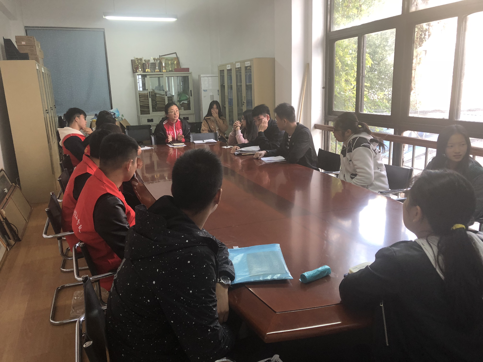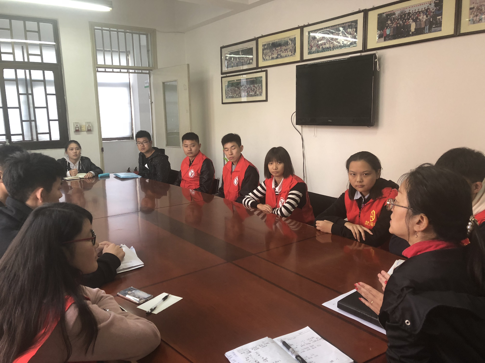 张媛老师在会上将控烟工作具体布置如下:此次控烟活动由系学生会权益部牵头,定期到教学楼和学生宿舍进行检查,控烟纠察员要保障在管辖的区域内无烟头、无吸烟者,并且随时都有劝诫吸烟者的义务,若有不听劝阻者,要做好记录,并报辅导员进行进一步措施。