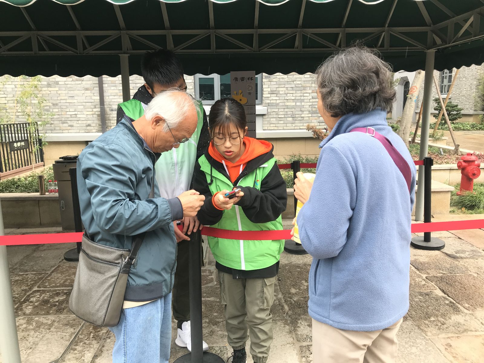 本次志愿服务为期8天,累计接待国内外游客1万余人次,身着红衣的青年志愿者们在景区内成为一道靓丽的风景线。我系志愿者的岗位分别设在景点内的售票处、地下车库检票口和水下博物馆,主要为游客提供售票咨询、道路指引、拍照合影以及景点讲解等暖心服务。每天清晨6点半,志愿者们就要搭上前往广富林文化遗址的公交车,虽然天气寒冷,但志愿者们的朝气和热情并没有降低半分。“请问去朱雀门怎么走?”、“到哪里可以搭公交车?”,志愿者总是耐心、详细地一一为游客解答,在游客需要拍照留念时主动上前帮助,为各方游客提供热情优质的服务。