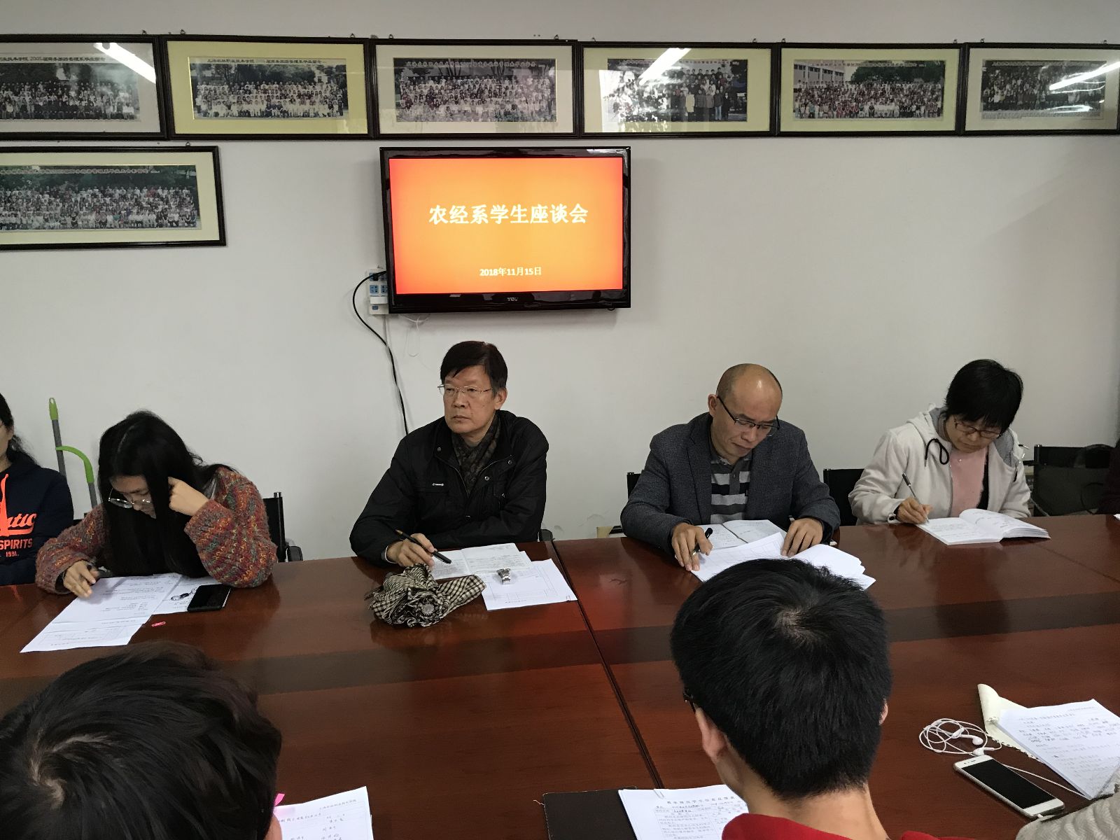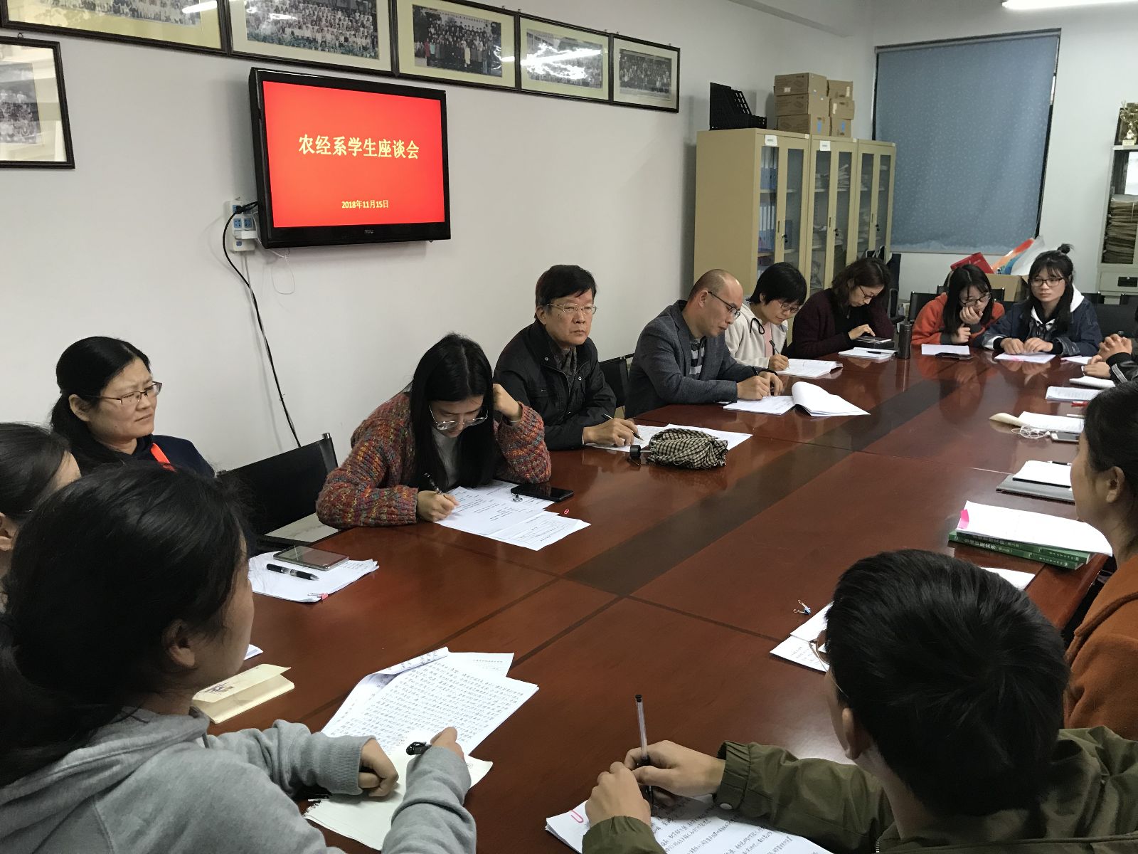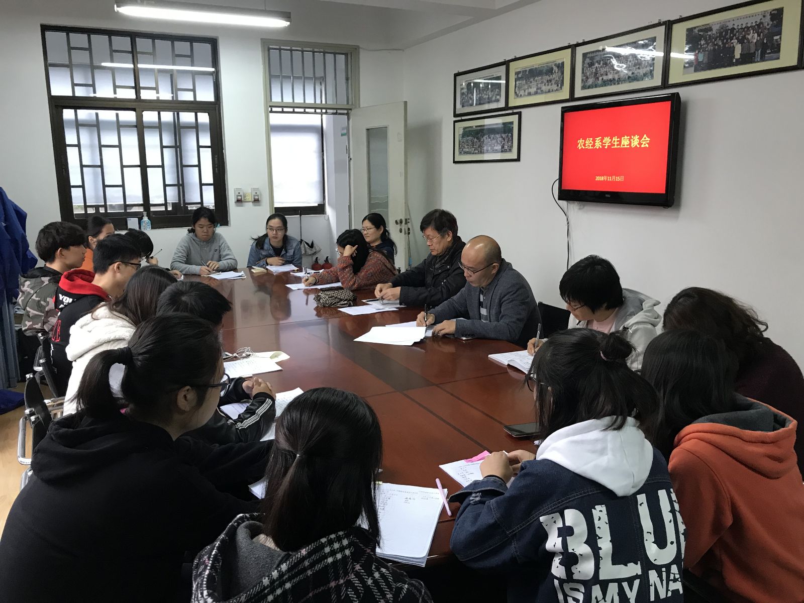 11月15日下午,农经系召开学生座谈会,学院督导汪雪兴教授,系副主任路以兴老师,各教研室主任及2017级、2018级12个班的学习委员参加会议。