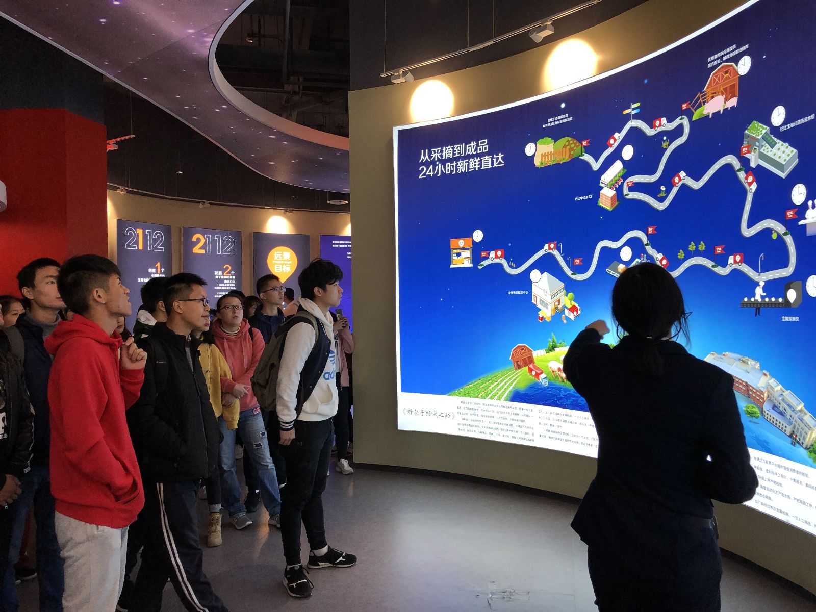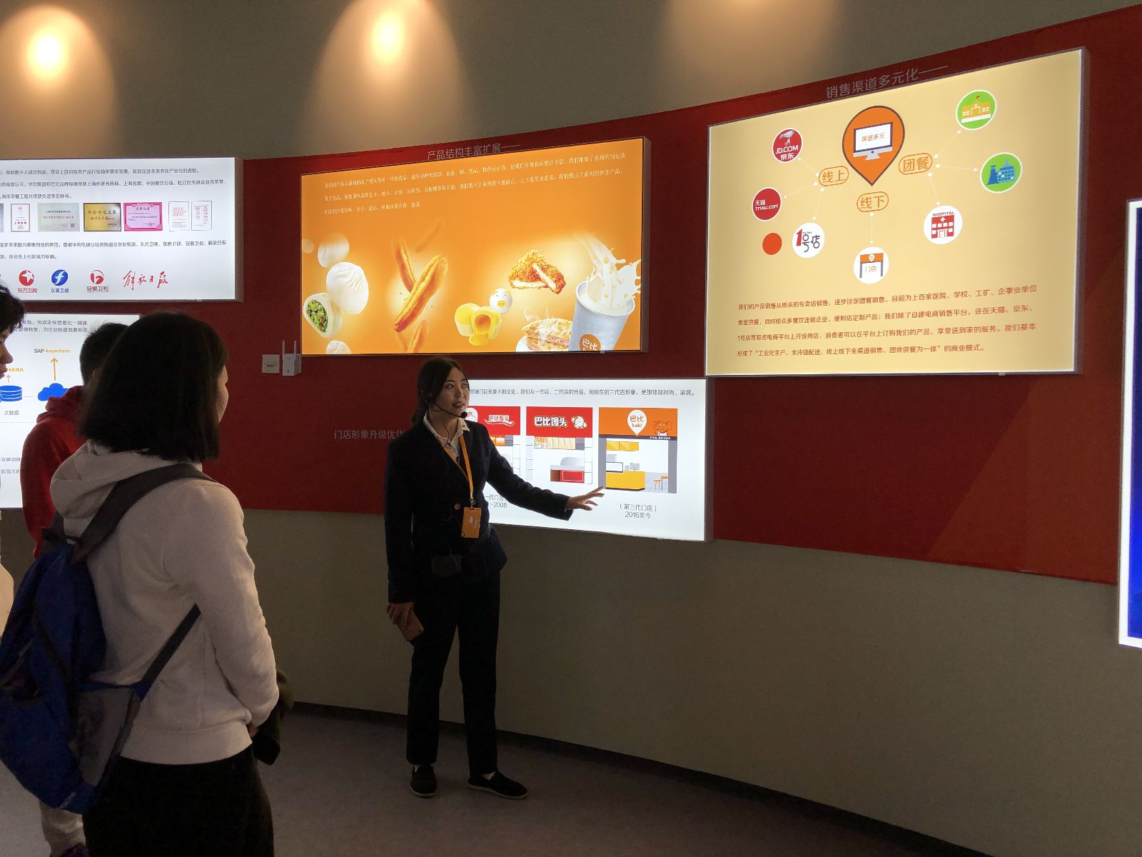 本次课程包括现场参观和专家交流两大部分。 首先,巴比食品行政总监王总的带领同学们参观了巴比魔法面点乐园及巴比透明工厂。在巴比魔法面点乐园,王总依次介绍了巴比概况、巴比2112计划、巴比的食品工艺、巴比生鲜配送等。展厅内一个大屏幕吸引了同学们驻足观看,王总介绍,大屏幕上包含了巴比所有加工车间的实时直播画面,这些直播画面也接入了政府监管机构,巴比对于自身食品质量的自信获得了同学们的赞叹。在巴比透明工厂,学生们亲眼见证了从新鲜蔬菜到馅料的七道工序,可以说所有工序实现了透明化、可视化,进一步证实了巴比食品操作的规范性、质量的可靠性,同学们纷纷表示,吃巴比馒头真的很放心。