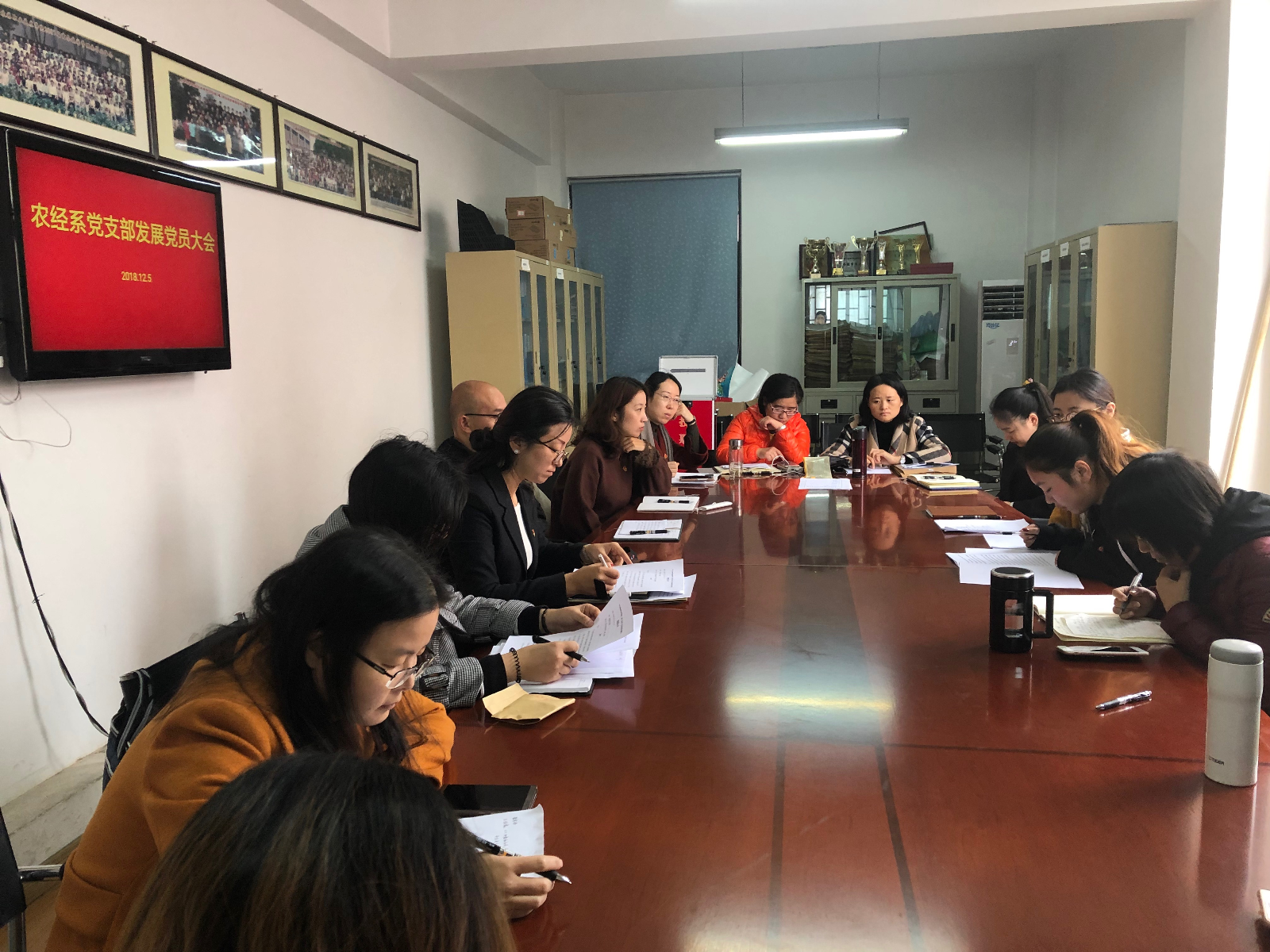 2018年12月5日,农业经济管理系党支部在农经楼208召开了支部党员大会。大会的主要议题关于拟接收王维霞和秦雪珠同学为中共预备党员,由农经系党支部书记张媛主持。
