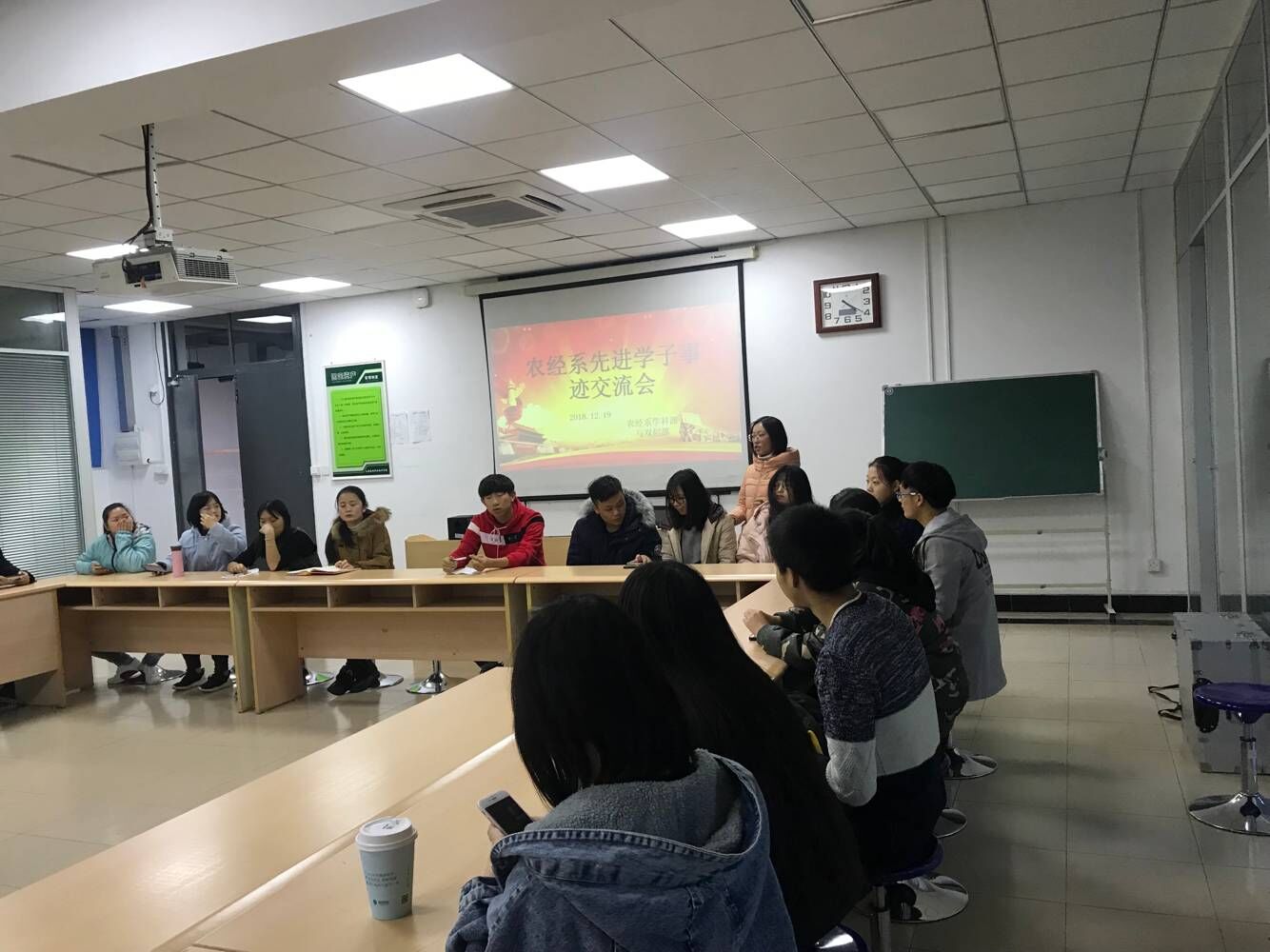 2018年12月19日下午4:15,系学科部和双创部主办的“农经系先进学子事迹交流会” 在一教415举行。学科部邀请了学生身边的三类典型(道德模范、专业学习与创业模范、综合素质与能力全面发展模范)作为报告团成员,他们向大一的学弟、学妹们分享了自己的心路历程,传递着榜样的力量。