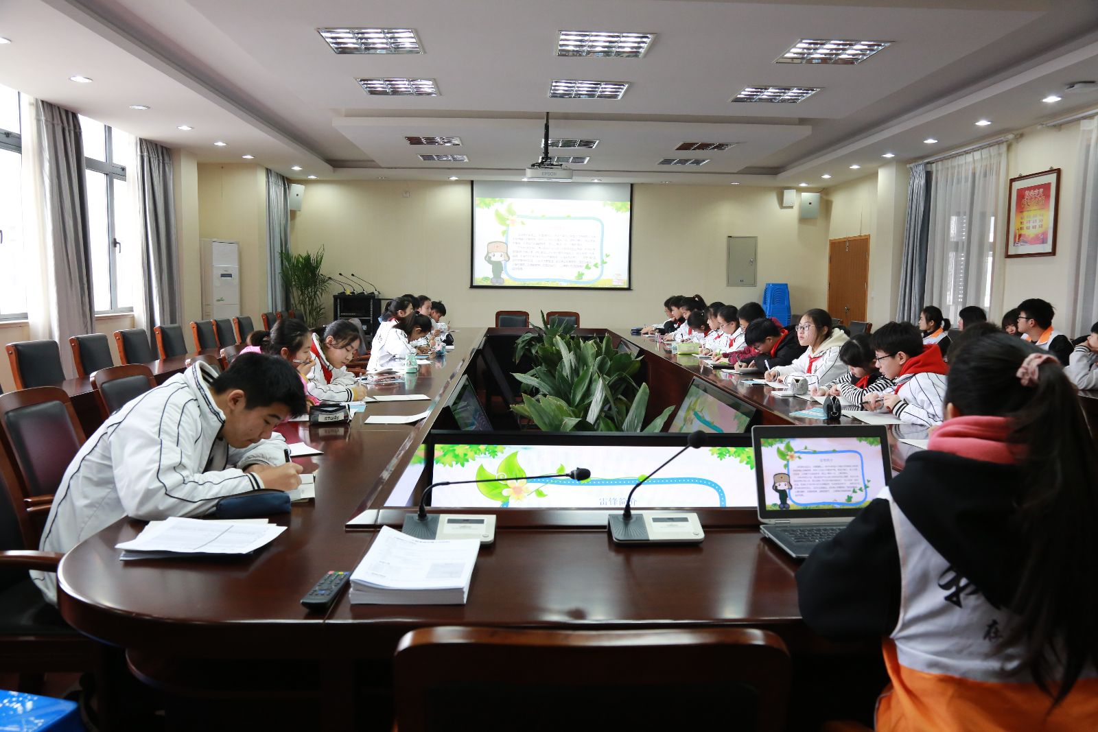 3月1日,我系启动新一轮为结对中学上团课的志愿服务活动,10名志愿者来到上外松外开展以《学习雷锋精神,争当文明先锋》为主题的团课教育活动,授课对象为八、九年级的42名入团积极分子。