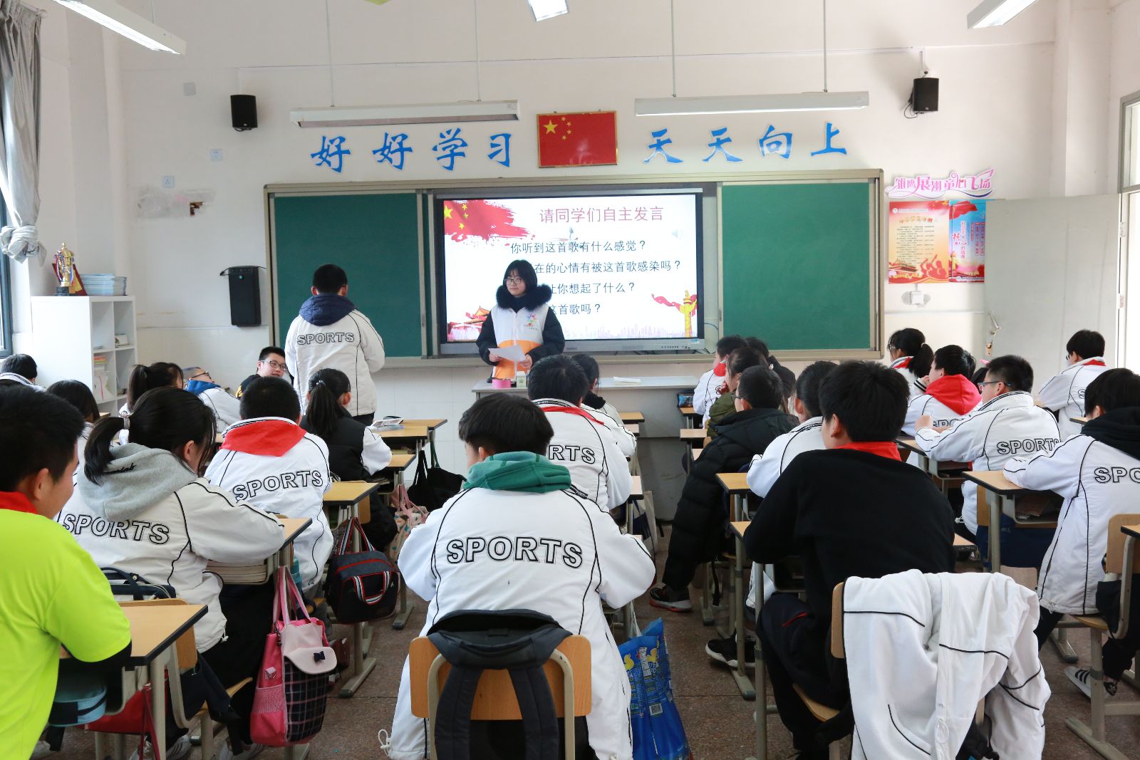 授课主题围绕爱国主义进行。志愿者们以生动朴实的语言,先后讲了民族英雄,爱国诗句,新时期的爱国主义,爱国从小事做起以及观看爱国视频。通过此次团前教育,同学们认识到要把对祖国的热爱落实到日常生活中,落实到具体行动中,从热爱集体、关心同学、尊敬老店师做起,只有心中有集体、有他人,才会有国家。