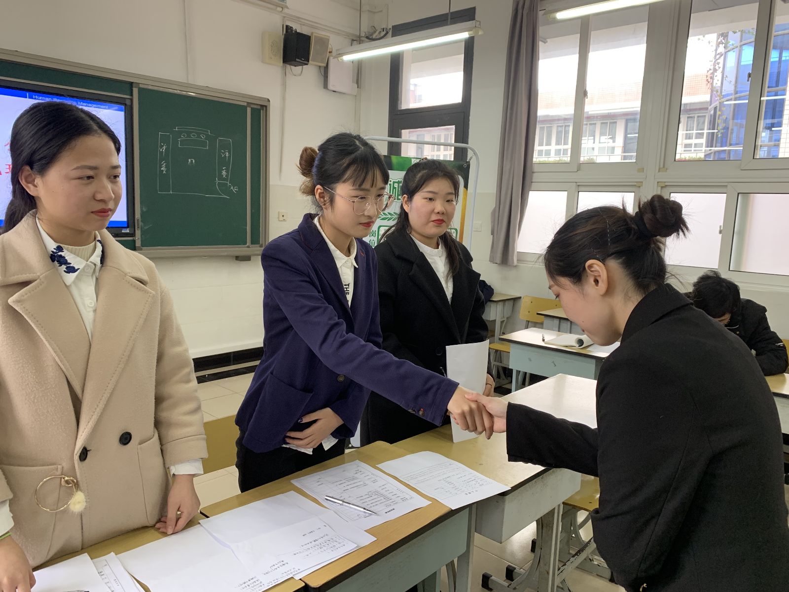 课前,范丹老师对模拟招聘活动进行了充分地准备和布置,课上采用了情境模拟方式,让经营乐实公司的三位同学夏银茵、张家宁和张亚平分别扮演了公司总经理、销售部经理和人力资源部经理角色,对三位候选人进行了小组面试。教学中综合运用智慧职教云课堂、课程微信群和视频动画等信息化手段,打造了线上线下、课内和课外的一体化智慧学习环境,极大地调动了同学们的学习积极性和兴趣!