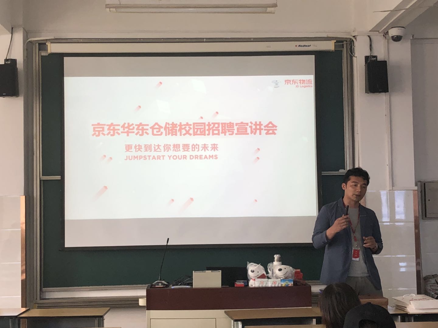 宣讲会上,同学们观看了京东物流的宣传片,周经理介绍了京东物流的发展,主要实习岗位分布,各岗位知识和技能需求,职业发展等。