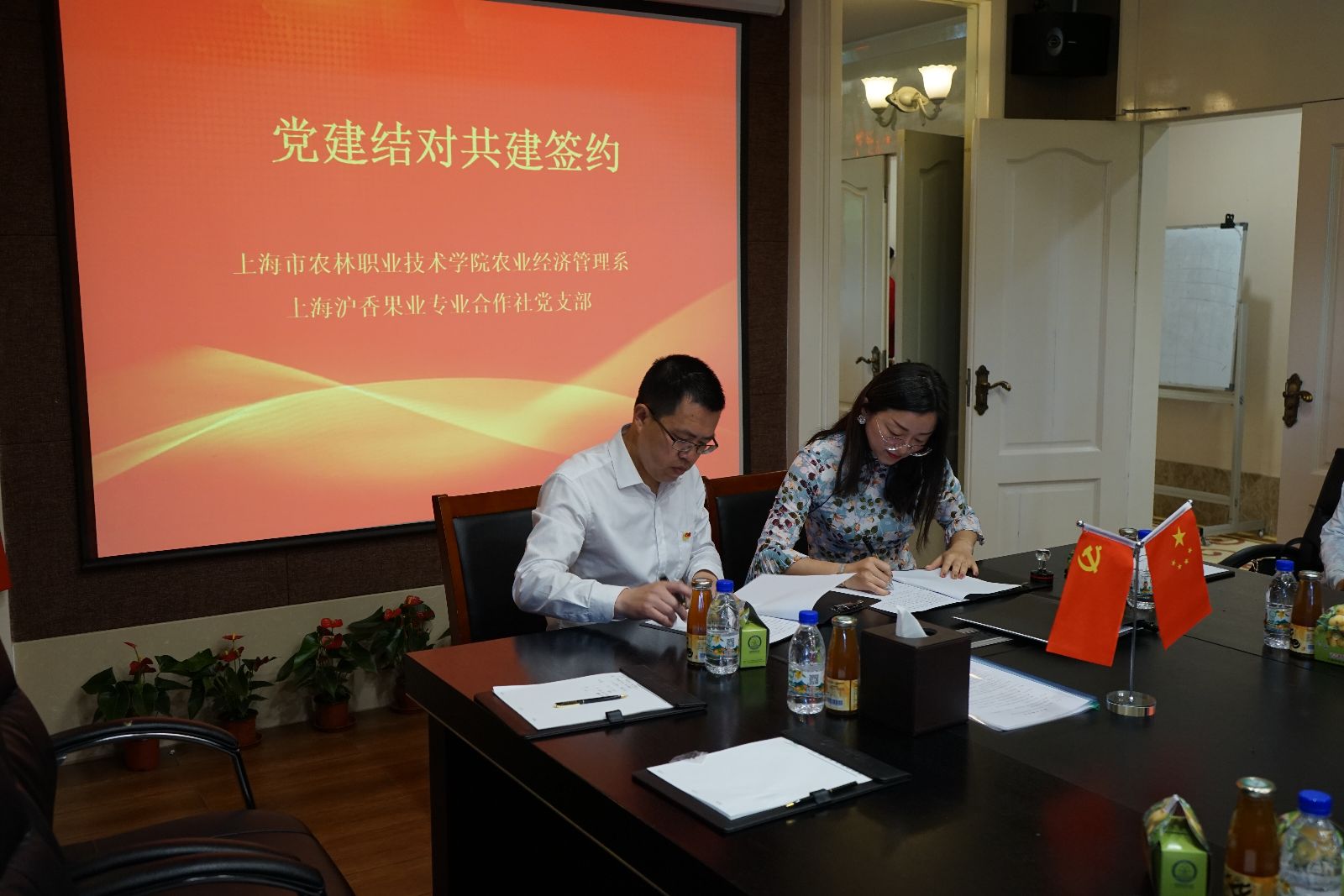 上午十点半,在枇杷园第二会议室进行了我系党支部与上海沪香果业专业合作社党支部党建共建签约仪式、校外实训基地授牌仪式及聘任仪式。林果所党支部也就共建方面与沪香果业专业合作社党支部进行了协议的签署并挂牌。今后,我系党支部与沪香果业专业合作社党支部将结合实际情况,开展有利于党建工作的交流活动。本着资源共享、优势互补、注重实效的原则,立足党建推动乡村振兴,交流工作经验,解决实际问题等,共筑组织基础,共促队伍建设,共谋双方发展。实现党的建设与企业发展良性互动,服务乡村经济,凝心聚力促进和谐的目标。