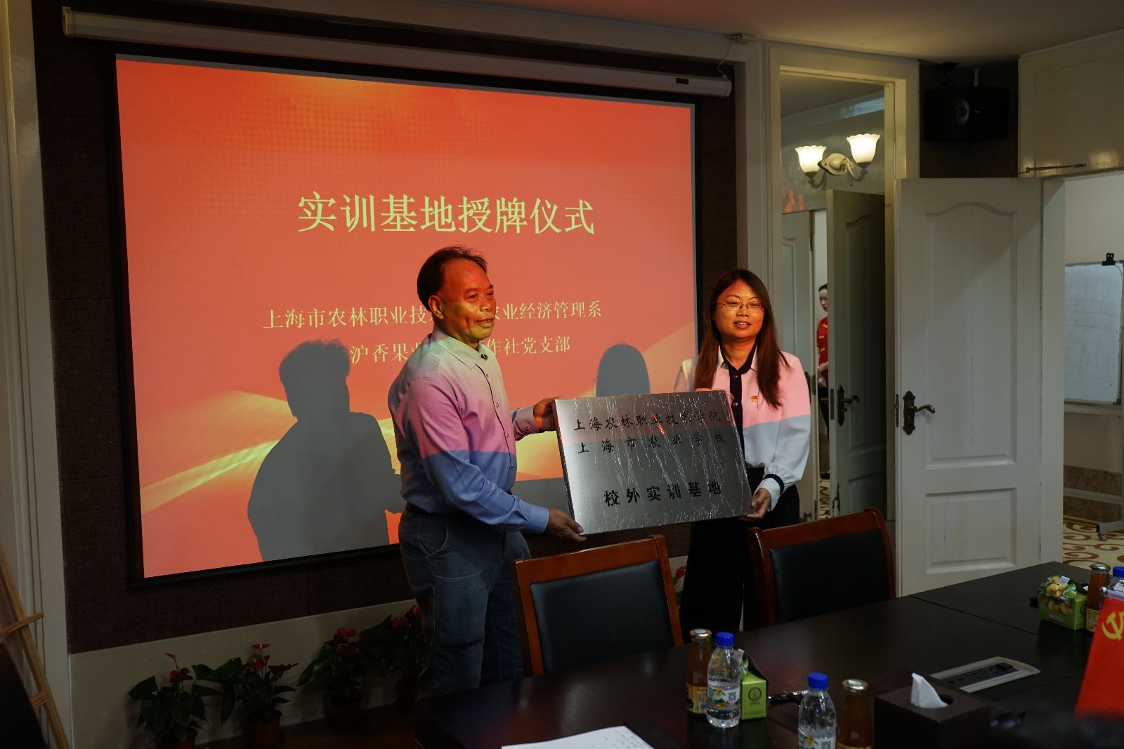 本次活动涉及我方共三件大事,一是农经系党支部与沪香果业专业合作社党支部确立为党建结对共建单位,并达成共建协议。二是青浦联怡枇杷园正式成为学院校外实训基地,现场进行了授牌仪式。三是上海沪香果业专业合作社聘任我系王桂霞老师为业务技术顾问;农业经济管理系聘任上海沪香果业专业合作社姜亚峰为兼职讲师。