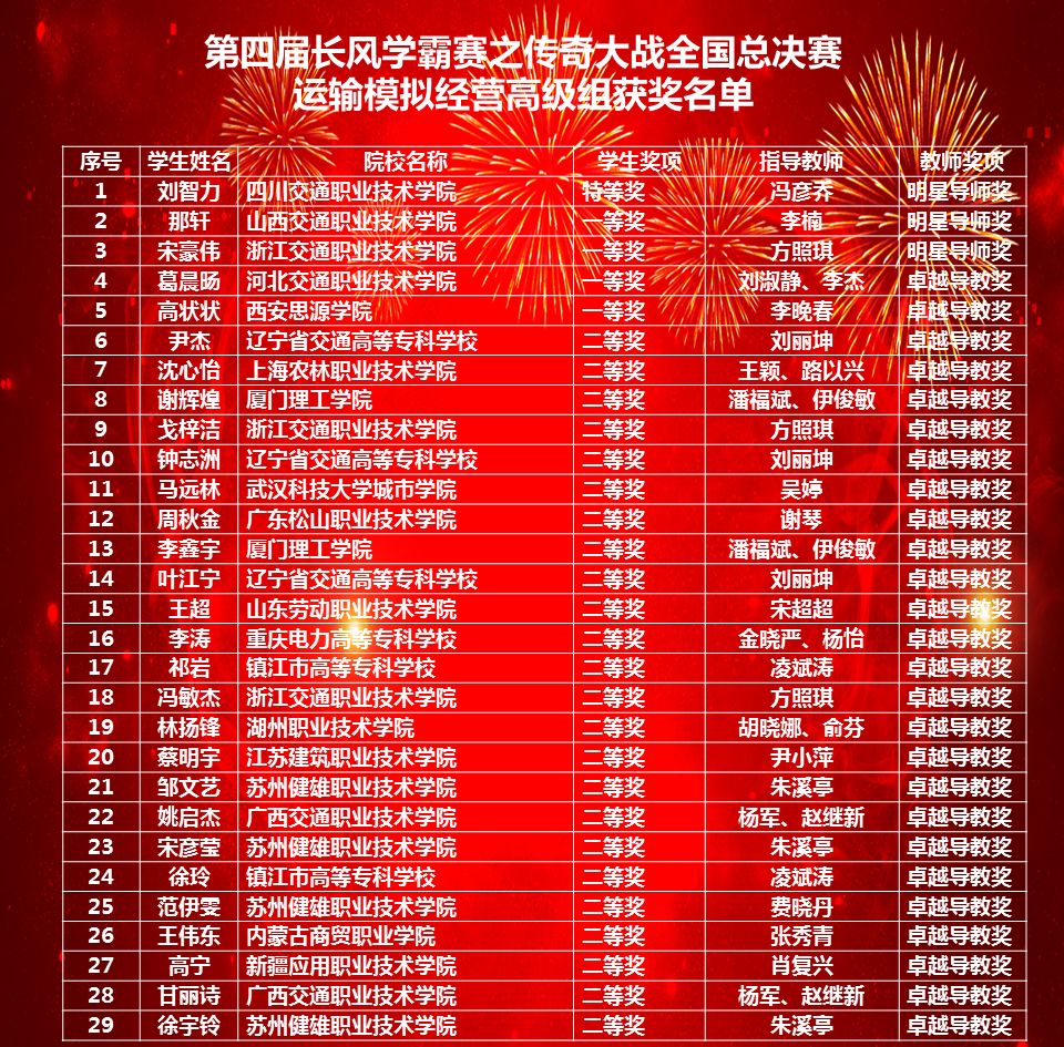 第四届长风学霸赛之传奇大战是由全国交通运输职业教育教学指导委员会主办,河南工业大学和北京络捷斯特科技发展股份有限公司共同承办的一项全国性赛事。大赛自2018年10月启动以来,共吸引来自全国30个省市的360多所学校,近2万名学生参赛。大赛包括运输模拟经营和供应链运营两个赛项,每个赛项分为中级组和高级组两个级别,经过校园赛、全国积分赛的层层角逐,最终运输模拟经营赛项共有62人、供应链运营赛项共有20支队伍进入全国总决赛。