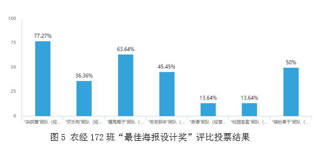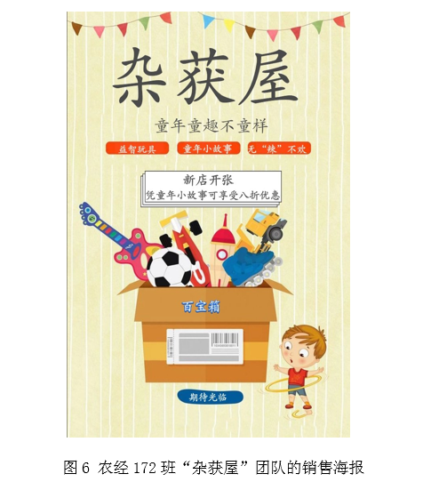 第三,本学期农经17级各组的实训活动整体完成质量也在提高,特别体现在海报设计和营销微视频的制作方面。通过农经系内师生共同参与投票,农经172班的“杂获屋”团队(见下图5和图6)和农经171班的“柠檬达人”团队获得“最佳海报设计”奖。
