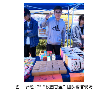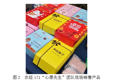 首先,在经营产品中以国内外零食、饮料、水果、动漫周边、明星周边、日用品等大学生日常需求品为主,但在销售形式上有所创新,结合大学生好奇心和追求刺激的动机,如有三个小组尝试采用“盲盒”、“幸运盒子”或“福袋”形式(见图1和2)开展销售。