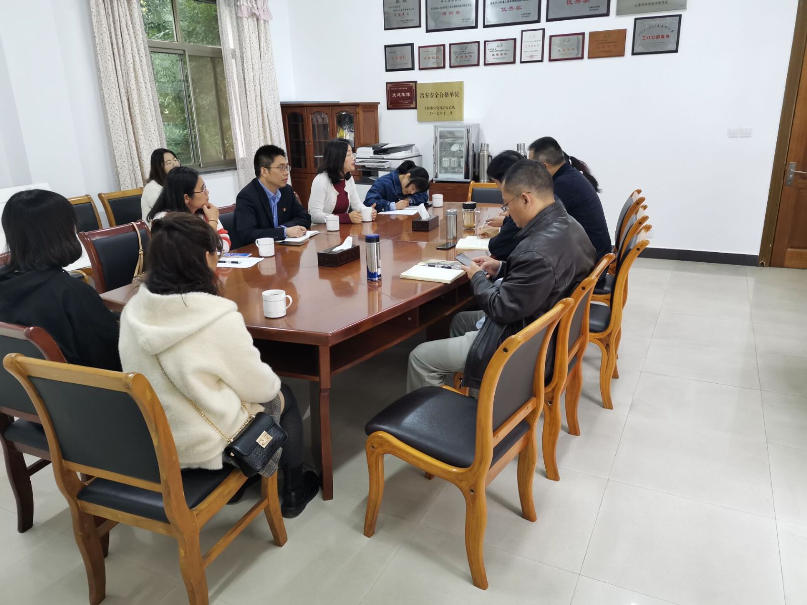 为贯彻落实“不忘初心,牢记使命”主题教育的要求,11月7日上午9点,农经系党支部书记、副主任张媛和图书信息中心党支部书记景俊带领支委及3位团员学生代表来到松江区博物馆,与松江博物馆党支部吴明书记一行进行了座谈。出席座谈会的还有松江博物馆杨馆长、曹副馆长和开发教育部朱老师、农经系团总支书记唐晓英、图信中心党支部组织委员沈琴。