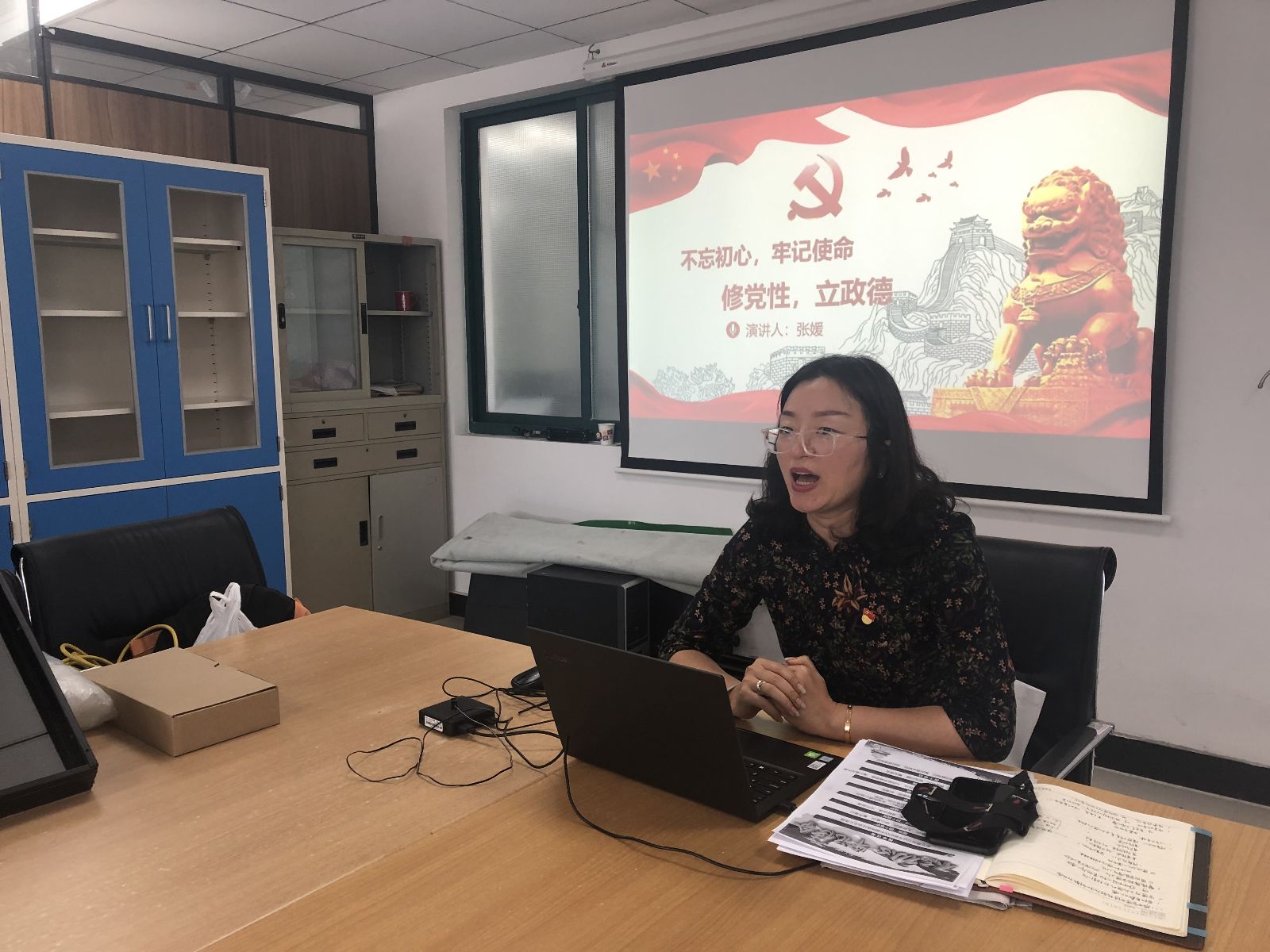 2019年11月8日中午,农业经济管理系党支部在综合楼701,开展“不忘初心,牢记使命”主题教育党课,由支部书记张媛担任主讲。