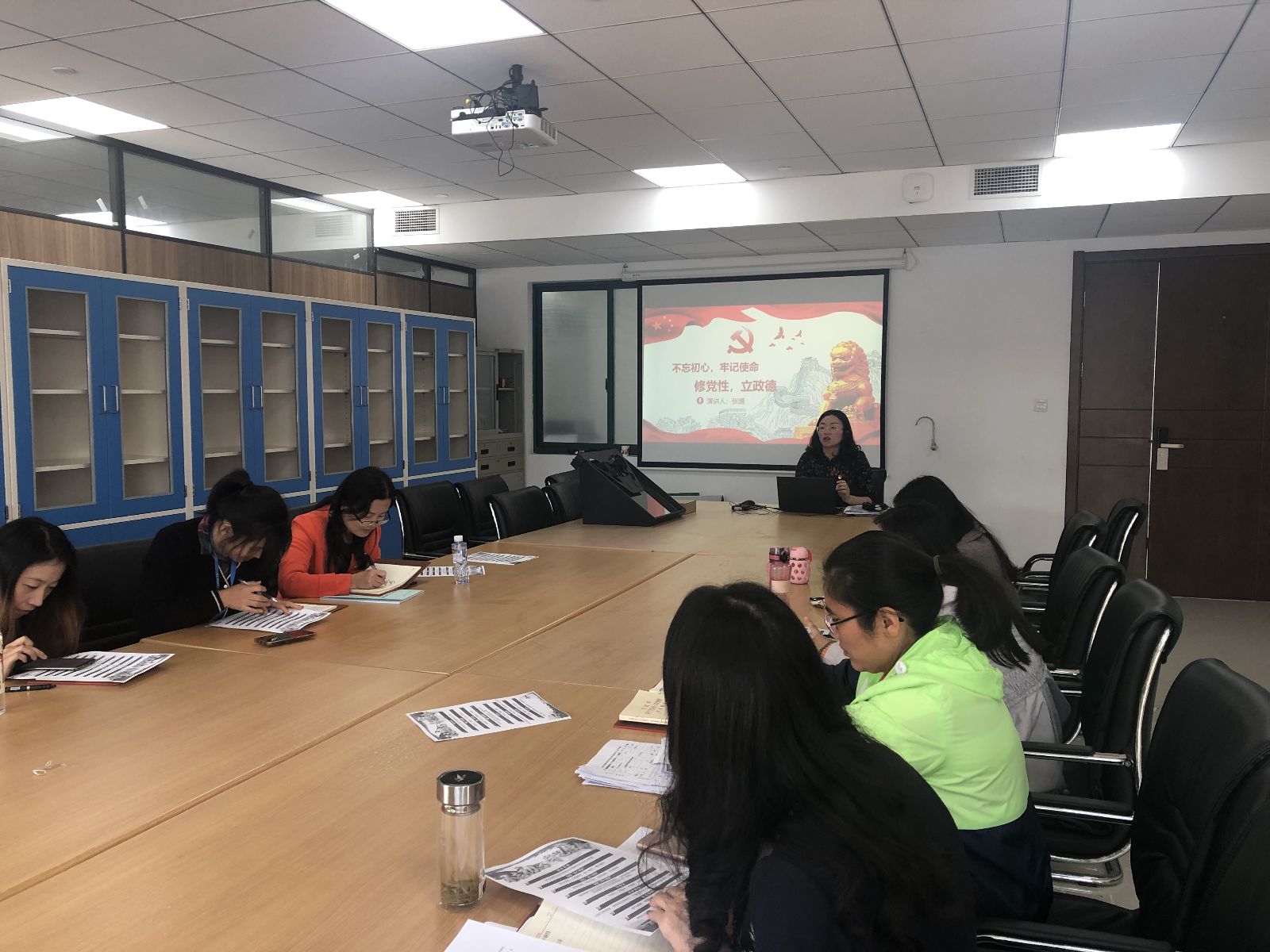 2019年11月8日中午,农业经济管理系党支部在综合楼701,开展“不忘初心,牢记使命”主题教育党课,由支部书记张媛担任主讲。