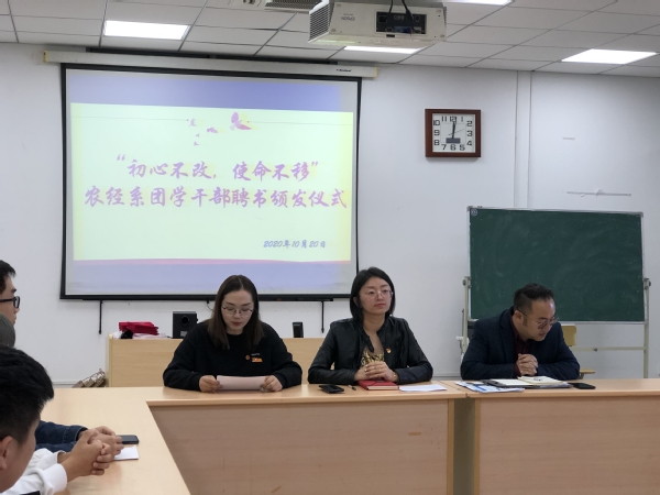10月20日中午12点,农业经济管理系团委学生会骨干在一教415室,举办了18级团学干部聘书颁发仪式。农经系党总支副书记张媛、学院团委书记胡慧春以及以及18级全体团学干部出席此次活动。
