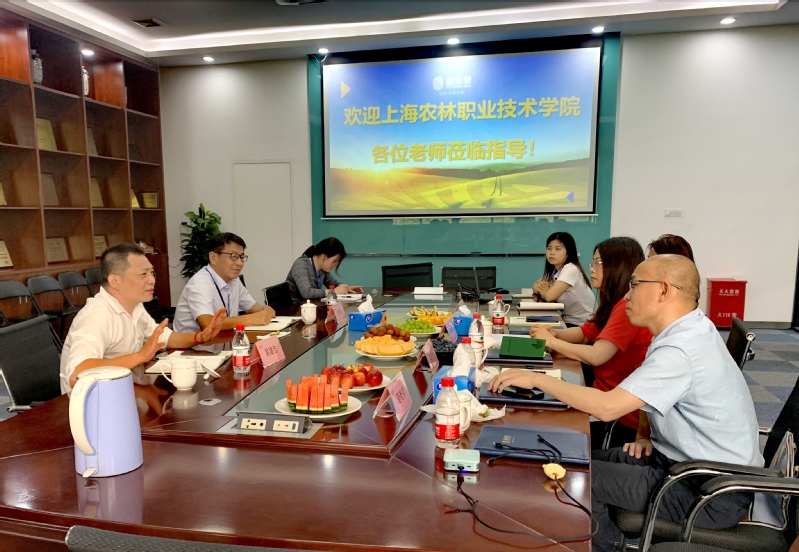 6月16日上午,经管系主任高萍带队,系党总支副书记张媛、副主任路以兴、辅导员唐晓英一同走访了位于松江区新桥镇的鑫荣懋果业科技集团股份有限公司,受到集团公司华东区总负责人吴建忠先生、人力资源总监李新先生、人事专员郭庆等的热情接待。
