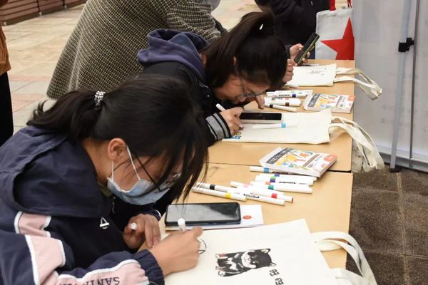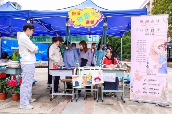 旅游创意商铺围绕我系学子设计的松江旅游路线图进行答题抽奖、帆布包DIY制作等有趣的活动。这些活动吸引了许多同学们的驻足和参加。不少同学在松江特色旅游景点答题的抽奖活动中得到了我系独有的周边口罩和雨伞,还有些同学在DIY帆布包中展现了自己的创意,增加了活动的有趣性。