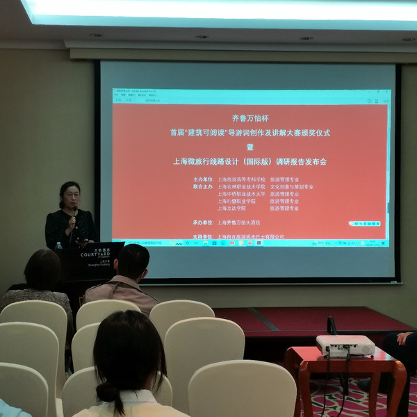 为推动上海旅游文化业的发展,并在一定程度上注入青年力量,我院经济管理系文化创意与策划专业同上海多所高职院校联合主办了首届上海齐鲁万怡杯“建筑可阅读”导游词创作与讲解大赛。11月26日,在上海齐鲁万怡大酒店召开了颁奖仪式暨上海微旅行线路设计(国际版)调研报告发布会。
