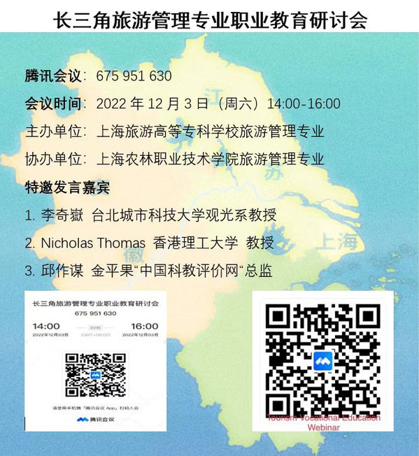 依据学院十四五发展规划,为进一步加强党建引领下的旅游管理专业建设,由我院旅游管理专业协办的“长三角旅游管理专业职业教育研讨会”于12月3日下午顺利召开,经管系教师党支部书记王桂霞、副教授郁琦老师等专业教师参加了线上交流。