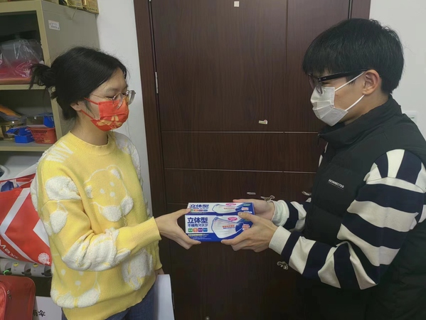 捐赠口罩到达学校后,经管系辅导员快速组织学生领取口罩。收到捐赠口罩的农经221班黄宏刚同学激动地说:“收到胡杰学长捐赠的口罩,我们感受到了冬天的温暖,温暖了我返乡归家的路。感谢学长的爱心捐赠,我们会以他为榜样,努力奋斗,回馈母校、报答社会。”