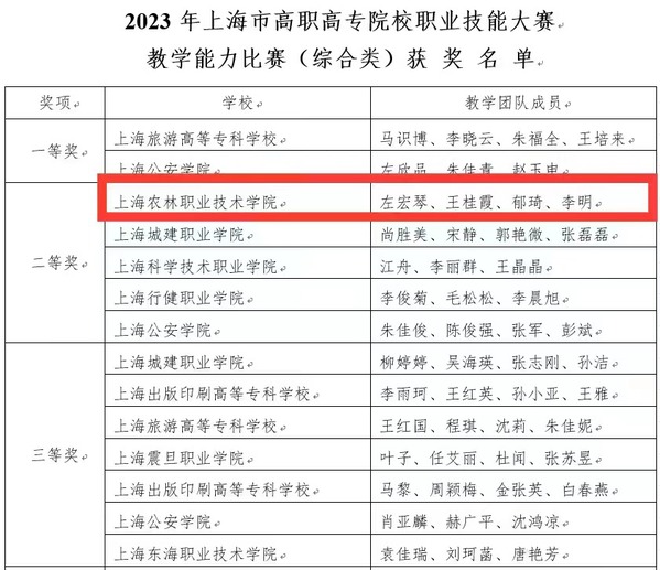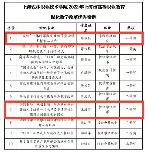 2023年2月20日,上海市高职高专教学研究会公布了2022年上海市高等职业教育深化教学改革优秀案例评选结果,在公布的评选结果中,经管系路以兴、王海丽两位老师分别获得一等奖、二等奖的好成绩。