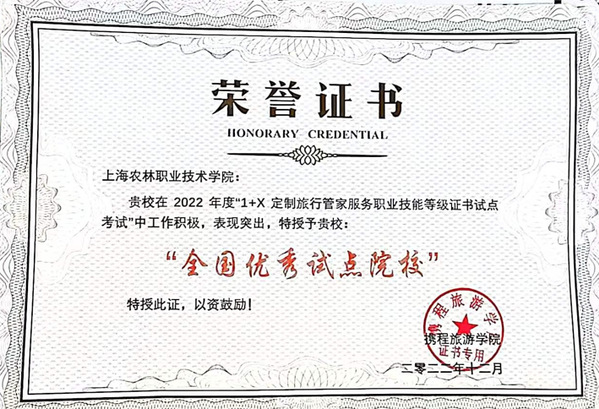 近日,我院获1+X定制旅行管家服务项目工作“全国优秀试点院校”称号。