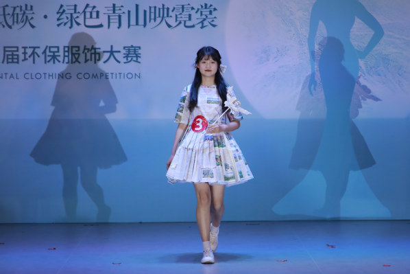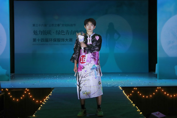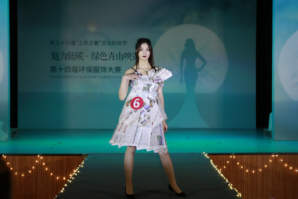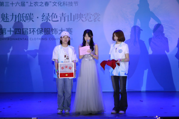 本次大赛以“魅力低碳·绿色青山映霓裳”为主题,24个参赛队伍充分领悟大赛主题与精神,将环保理念融入自制服饰中,以废旧报纸、垃圾袋、废卡纸、废布料等为主要材料,制作成了一件件具有创新性、实用性和艺术性的新霓裳。最终,生技211石转转负责的17号作品《浅堤月光》获得环保服饰大赛一等奖;网络222江漫负责的12号作品《Bless》和生物221孙琪琪负责的14号作品《夜半风铃》获得二等奖;休闲211麦吾鲁代·马哈热提负责的8号作品《have it all》、农经212刘畅负责的9号作品《追蓝》、流通211许茗琰负责的3号作品《热带不低压》、文创222尚昊彤负责的24号作品《Nc》获得三等奖。