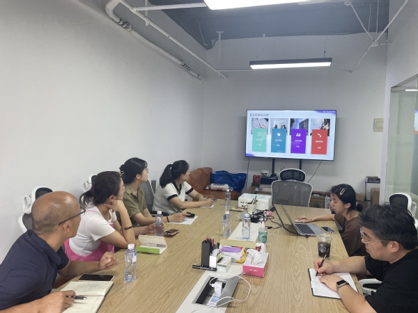 路以兴介绍了创意系发展概况及专业结构,并表明了本次调研的主要目的。姚雯蓉结合大白兔奶糖、吴良材眼镜等老字号的品牌策划案例介绍了圆周率公司的业务内容。张海燕介绍了设计行业的发展趋势、行业特点及核心技能;刘毅介绍了设计行业人才需求特点及职业发展路径。过程中,教师们就专业申报过程中碰到的相关问题进行了交流。
