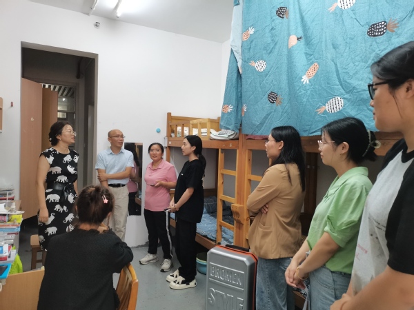 为深入了解2023级新生的到校情况,帮助新生尽快转变角色,适应大学新环境,数字经济与创意系主任路以兴、系党总支副书记张媛与辅导员们于9月17日深入寝室走访慰问新生。