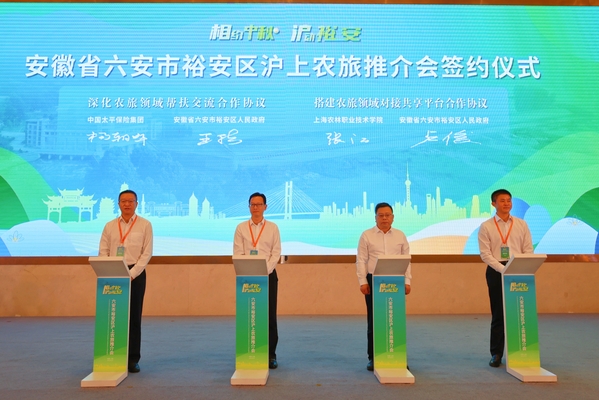 9月25日上午,在安徽省六安市裕安区沪上农旅推介会上,学院副院长张江与裕安区副区长卢俊签订关于搭建农旅领域对接共享平台的合作协议,开启了双方校政合作、互惠共赢的新篇章。