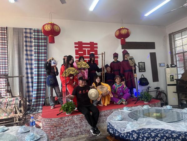 在调研过程中,学生们对甪钓湾小镇新的文化创意活动——角色扮演类互动体验相当感兴趣。于古色古香的白墙黑瓦间,身着古时才子佳人的服装,自身与环境相辅相成,颇具意境,完美展现了一幅江南田园自然闲适的优美画卷。同时,在角色扮演中,融入几个颇具喜剧色彩的角色,更给这一体验增添了几分趣味,同学们以沉浸式学习的方式体验了热闹的乡村文化。