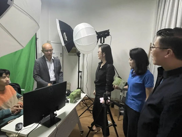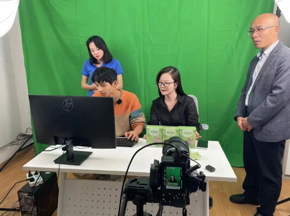 接着,路以兴带领许丽团队参观了“助力乡村振兴”直播间,相关老师向大家介绍了直播专用设备并现场解答了相关问题,许丽现场体验了直播过程。