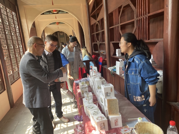 创意系党总支为叶榭镇老年人贴心服务,特意组织农林学生一对一陪着叶榭老年人游园,增加老年人游园体验感,并为老人送上文创学生设计的创意类小作品。