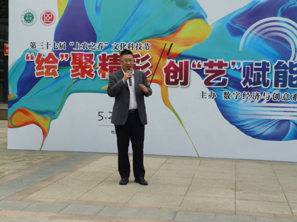 5月20日中午,由数字经济与创意系承办的“‘绘’聚精彩 创‘艺’赋能”学生作品展暨综合集市在综合楼底正式开幕。党委书记蔡红、院长陈立婧、副书记、副院长邵阳、副院长费国强出席,学工部、团委负责人、各系学工负责人、创意系党政班子、教师、辅导员和学生代表参加。