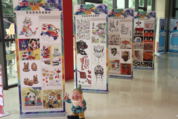 学生作品展分为四个板块——绘影书义、产教融合、文创赋能、乡村振兴。绘影书义板块展示了众多绘画和书法作品,彰显学生们对艺术的热爱和追求;产教融合板块展示了学院与企业合作的成果,突出系部在产教融合方面的探索;文创赋能板块展现了学生们结合传统文化与现代设计的创新成果,为传统文化的传承与创新带来新活力;乡村振兴板块聚焦乡村主题,通过艺术作品展示乡村美景、风俗民情,为乡村振兴做出贡献。