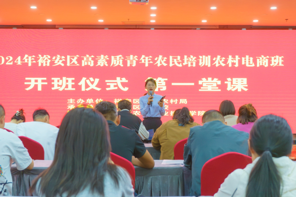 5月27日,由学院创意系协办的2024年裕安区高素质青年农民培训班在裕安区开班。裕安区农业农村局党组成员张继如,裕安区农业农村局科教股负责人陈小福,裕安区农广校校长朱自生出席开班仪式,由创意系主任路以兴主持。创意系6位教师,创意系新媒体营销社团的7位学生,来自裕安区农业一线的50名学员参加仪式。