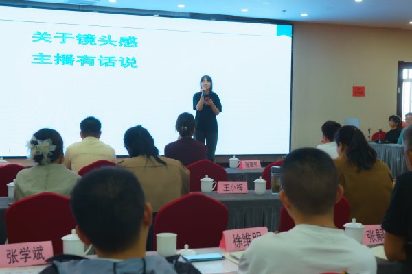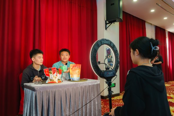 随后进入培训阶段,张计云老师线上演示了线上学习平台“云上智农”的注册和使用方面,并对本次培训的线上学习要求进行说明。赵光华老师作《新农人与互联网营销》专题讲座,丰富的案例、实用的内容、频频的互动,引发现场阵阵掌声。赵丹阳老师从直播前准备、直播中互动、直播后复盘、直播禁忌四个方面作《农产品直播技能》专题讲座,讲座中,创意系新媒体营销社团的学生在现场穿插进行了裕安特色农产品直播销售、直播相关岗位避坑经验交流、直播平台数据展示、交流互动等环节,多位学员在现场体验了农产品直播的全过程。