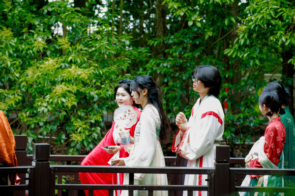 作为端午节庆的一大亮点,汉服游园活动吸引了众多市民和游客的目光。师生们身着传统汉服,穿梭于枇杷园中,不仅为活动增添了浓厚的文化氛围,也为参与者提供了一次穿越时空的文化体验。