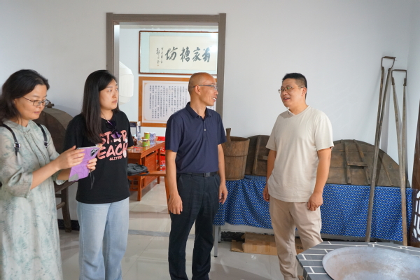 首先,公司负责人、徐集花生糖制作技艺非物质文化遗产传承人张学斌带领团队参观了徐集花生糖非遗展示馆,介绍了公司的发展现状及存在的问题,服务团队就相关问题进行了讨论。