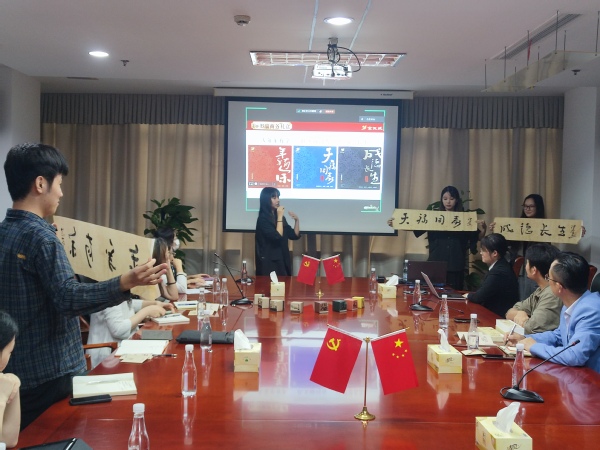 依托数字文创大师工作室,创意系扎实推进产教融合协同育人。9月26日下午,大师工作室成员倪海郡教授携手松江老字号品牌余天成的工作坊式课程《品牌策划》顺利进入成果验收阶段,来自华东理工大学30余名本科学生参加了本次课程答辩,余天成总经理张许杰现场评分,创意系党总支副书记张媛、副主任王海丽带领部分教师也前往余天成本部大厦观摩。
