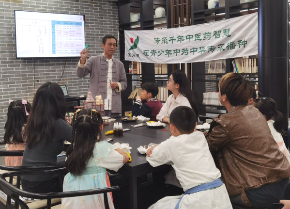 活动最后余天成公司总经理张许杰先生发言致辞:本次活动取得了丰硕的成果,不仅让在校大学生和小学生了解了中医药文化的一些基础知识,还通过动手制作环节让大家有更多的体验互动。感谢所有参与者和支持者,是大家的积极参与让这次活动取得了圆满的成功。余天成作为中华老字号将继续推进中医药文化的传承与发展,通过更多方式的合作和交流,让中医药文化在更广泛的领域中发扬光大。