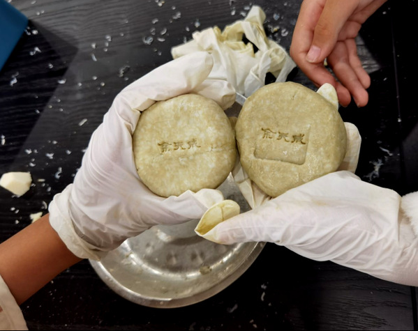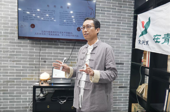 余天成健康馆的李文辉老师和裕快生物科技的孔雄师老师分别讲授了中医药药文化知识和传统冷皂制作工艺。