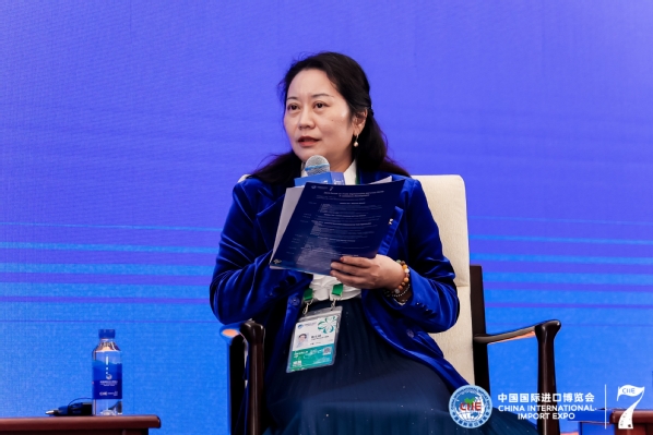 数字贸易人才可持续发展交流环节。华东师范大学教授贾利军发表了以新质生产力的要求推动人才供需适配的主题演讲。对外经济贸易大学国际商务研究中心主任王健主持了“数字贸易人才可持续发展”圆桌论坛,学院院长陈立婧、联合国国际贸易中心事务官员Sibylle Neuhaus、HSK中文学习测试(上海)中心主任王鹏等多位嘉宾,共同探讨数字贸易人才的可持续发展之路。陈立婧分享了学院创意系“基于数字时代背景培养数字经济人才的经验”。