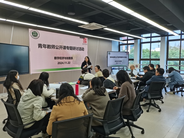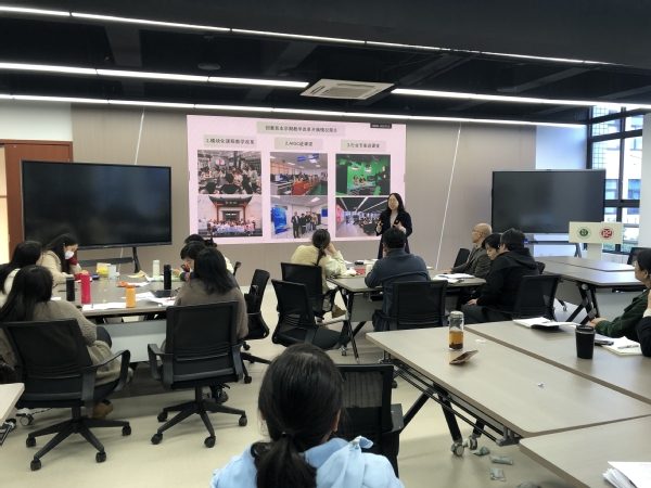最后,围绕本学期教务处开展的青年教师公开课活动进行专题研讨活动,陈丽诗老师进行了课堂说课的汇报展示。随后,现场各位老师进行交流讨论,左宏琴、郁琦等老师结合参赛经验从教学设计、教学实施等方面给出了建议,张婷、付小川、张涵等老师结合专业课程内容设计和课程思政融入等方面给出了针对性的建议。此次活动是陈丽诗老师在系部第二次公开演练,相比前一次有明显进步和提升。