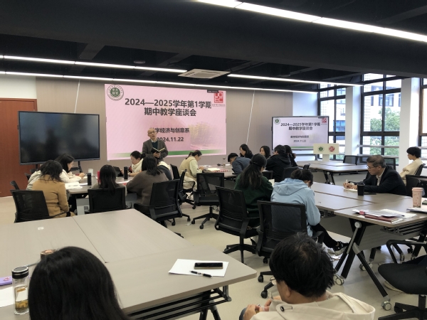 11月22日,创意系在一教415实训室召开本学期的期中教学检查教师座谈会和青年教师公开课研讨活动,系主任路以兴和全体教师参加座谈,会议由副主任王海丽主持。