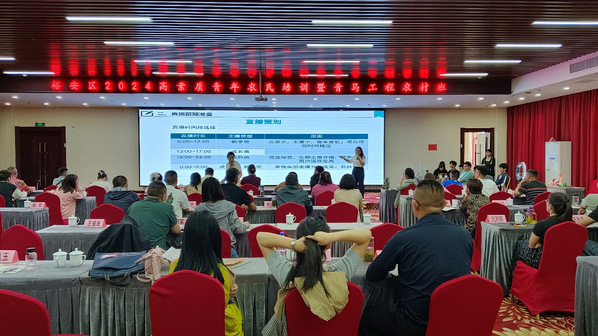 在双方不断深入合作的基础上,2024年4月,裕安市农业农村局提出高素质农民新媒体营销培训需求,要求农林学院结合上海数字经济发展的优势为裕安区50家农业企业开展农产品直播电商相关培训,农林学院欣然接受了本次培训任务。经多次讨论,本次培训采取“理实一体、工学结合”的培训方式,培训分为理论教学、实训教学、结业考核、跟踪服务四个阶段。