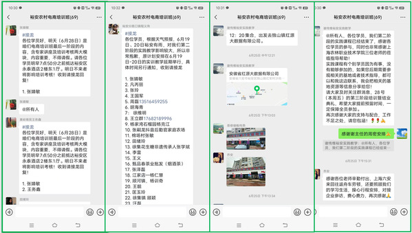 按照《高素质农民培训规范(试行)》的要求,我单位领导小组紧紧围绕裕安区农业发展现状,通过培训前对裕安区农村电商现状的细致调研,确定了“理实一体、农学结合”的培训理念,选择了“课堂授课+线上学习”、“外出考察+个别指导”形式的培训方式,采用线下理论讲解与线上自主学习相结合、基地考察学习与个别跟踪指导相结合、本地培训与上海考察相结合的方法开展培训,培训形式多样。培训过程中,不断了解学员情况,优化培训内容和方式,基本做到了培训内容和形式的针对性。例如:因天气因素,多数学员雨前农忙,原计划6月19日-20日开展的实践教学延后到6月23日-24日,努力做到学习生产“两不误”,提升了培训效果。