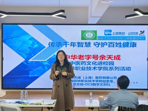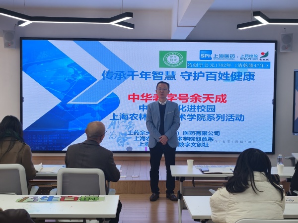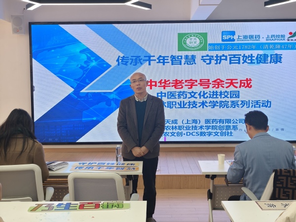 12月6日下午,在我校农经楼308文创实训室顺利开展了“传承千年智慧 守护百姓健康”,“中华老字号余天成 中医药文化校园系列活动讲座”,中医药文化是中华民族的瑰宝,本次讲座不仅让师生们领略了中医药的博大精深,也为校园文化建设增添了一抹独特的色彩。