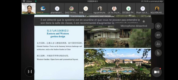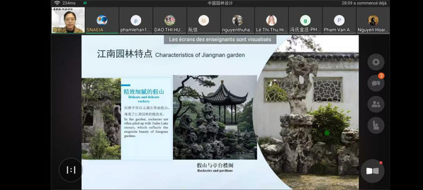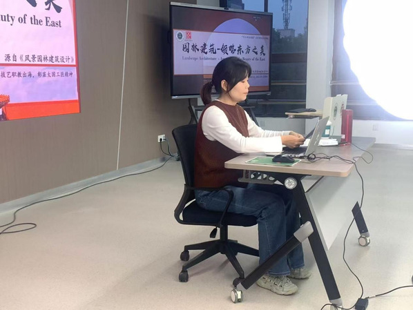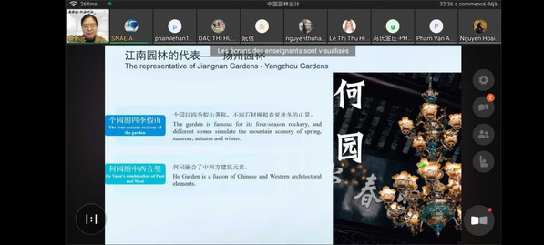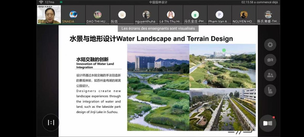 在《园林建筑-领略东方之美》的课程中,陈丽诗老师进行了中国传统园林中建筑类型的介绍,古典园林建筑设计的要求以及现代园林建筑的设计等。中国的古典园林建筑类型较多,亭台楼阁轩榭舫均各有特色,重点介绍了临水的古典园林建筑。在现代园林建筑的设计中,中国设计师注重融入AI和绿色低碳的理念,打造新型的园林建筑小品,具备一定的互动性。将中国园林建筑和现代园林建筑设计进行了融合,呈现给北非学生的是新一代中国式园林建筑。