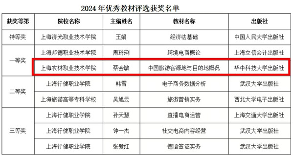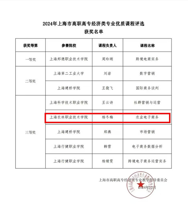 近日,数字经济与创意系蔡会敏、杨冬梅两位老师分别在2024年上海市高职院校经济类专业的优秀教材评审和优质课程评审中获一等奖和三等奖。